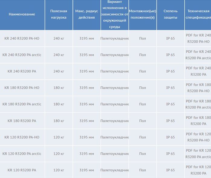 В плане продолжительности тактов он является одним из самых быстрых палетоукладчиков на рынке. KR QUANTEC PA имеет постоянную пропускную способность – даже при короткой продолжительности тактов и полной нагрузке.