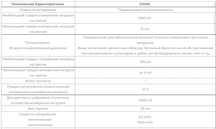 Минимальная скорость нагружения от 0,01 кН/с.