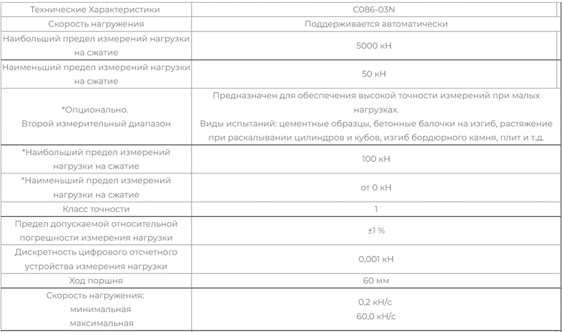 Минимальная скорость нагружения от 0,01 кН/с.