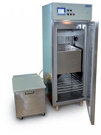 Предназначена для всех исследовательских и контрольных лабораторий: холодного и / или горячего измерения температуры, любых испытаний на замораживание / оттаивание и ускоренных испытаний на тверждение. Используется для отверждения бетонных (EN 12390-2) и цементных (EN 196-1) образцов и исследования реакции заполнителей (EN 1367-1) и бетона (EN 12390-9) на замораживание и оттаивание. Внутренняя и внешняя рамы изготовлены из нержавеющей стали AISI 304. Полиуретановая изоляция толщиной 75 мм. Внутренняя вентиляция. Реверсивные двери с автоматическими петлями и замком открытия свыше 180°, сменные магнитные прокладки, закругленные углы. Полки можно снимать и регулировать по высоте; регулируемые ножки. Датчик температуры может быть установлен в любой точке климатического шкафа; и внутри образца. Камера снабжена фильтром декальцинации; он работает с деминерализованными или размягченными водами или акведукными водами с твердостью CaCO3 до 300 частей на миллион, обеспечивая превосходное функционирование.