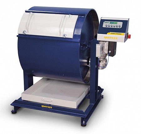 Скорость вращения барабана 31÷33 оборотов в минуту. Оснащен цифровым счетчиком, с помощью которого задается нужное количество оборотов барабана. Барабан уравновешен так, что отверстие для заполнения удерживается в положении без опрокидывания; пульт управления помогает установить барабан в положение погрузки / разгрузки.