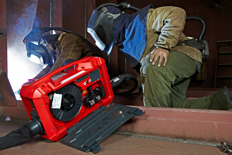 Механизм подачи проволоки маленький, легкий, и при этом мобильный. Он расширяет возможности применения аппарата и выполнен так, что не цепляется за детали конструкции. Панель управления и все индикаторы непосредственно встроены в механизм подачи проволоки. Таким образом, управлять сварочной системой можно прямо с рабочего места. Наклонное положение облегчает возможность обзора из любого положения.