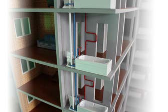 Специализированное наглядное пособие, в котором реализованы макетные модели, являющиеся аналогами реального многоэтажного жилого здания. Должно позволить наглядно отображать системы водоснабжения и водоотведения.