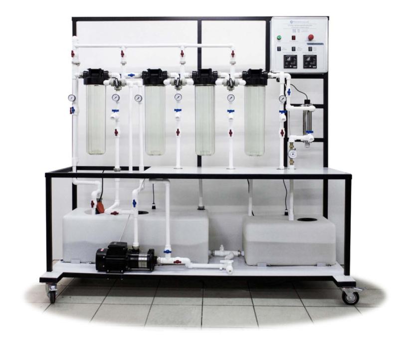 Лабораторный комплекс предназначен для изучения технического процесса очистки сточных вод, а также приборов и оборудования, применяемых в нем. В комплексе реализована возможность отбора пробы воды после каждого этапа очистки, что помогает контролировать качество очищенной воды при ее прохождении через отстойник и фильтры.