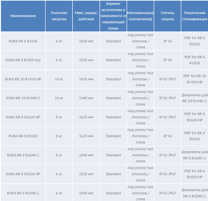 Промышленные роботы серии KR CYBERTECH nano предназначены для манипулирования мелкими деталями практически в любой сфере применения. Благодаря мелкой градации грузоподъемности (6, 8 и 10 кг) и отлично согласованным друг с другом типам роботов вы можете выбрать именно того робота, который вам действительно необходим, – для достижения максимальной эффективности и экономичности.