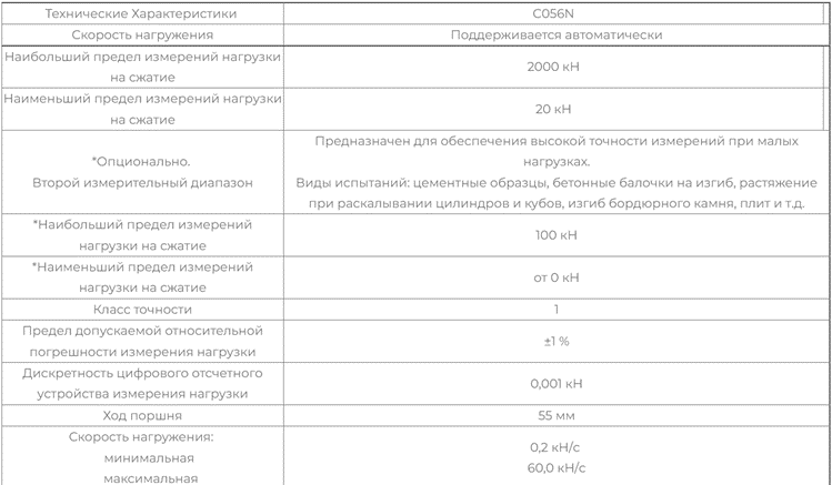 - соответствует нормам: ГОСТ 10180-2012 / ASTM C39 / AASHTO T22 / UNI 6686 часть 1 и 2 / NF P18-411 / BS 1610 / UNE 83304.;