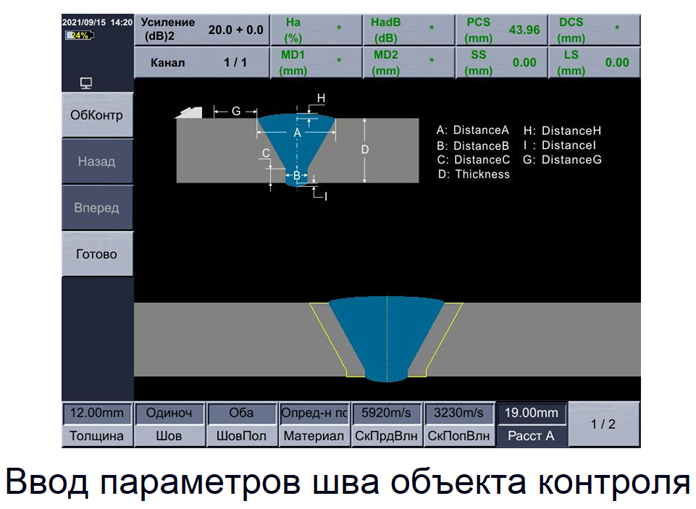 - В базе объектов контроля приведены детальные параметры и изображение разделки сварного шва.