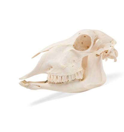 Модель черепа домашней овцы из натуральных костей. Для жвачных характерно отсутствие верхних резцов и клыков и их замещение небной пластинкой. Вы можете приобрести череп мужской и женской особи (на выбор).